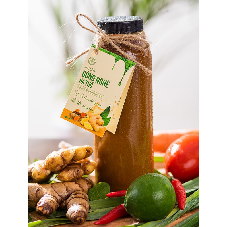 Gừng nghệ hạ thổ của Trí Đức được làm từ gừng, nghệ, rượu mang đến công dụng tuyệt vời trong việc đánh bay mỡ thừa, làm sáng da… sử dụng mỗi ngày